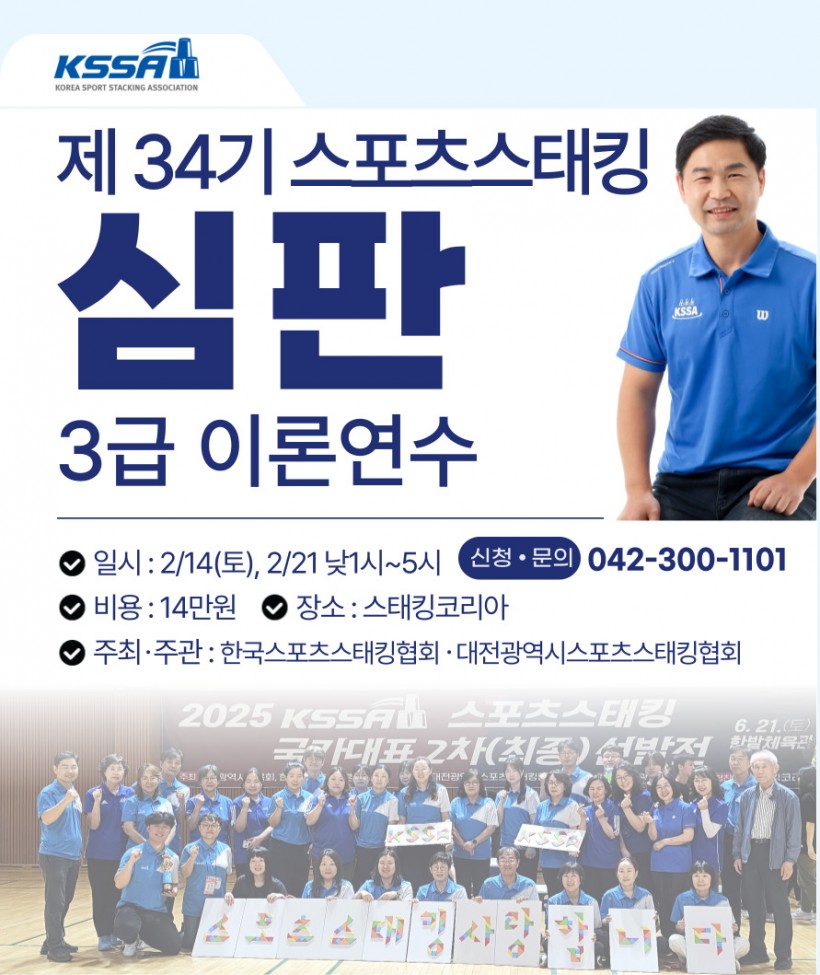 제34기 스포츠스태킹 심판 3급 이론연수✅ 일시 : 2월 14일(토) , 2월 21일(토) 오후 1시~5시