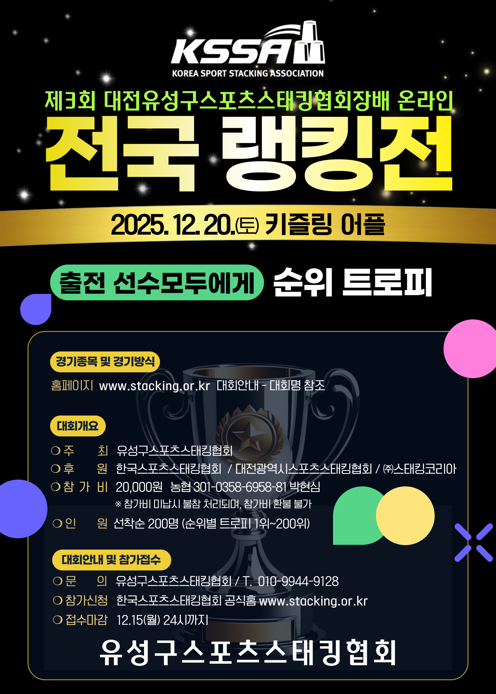 제3회 대전유성구스포츠스태킹협회장배 온라인 전국 랭킹전