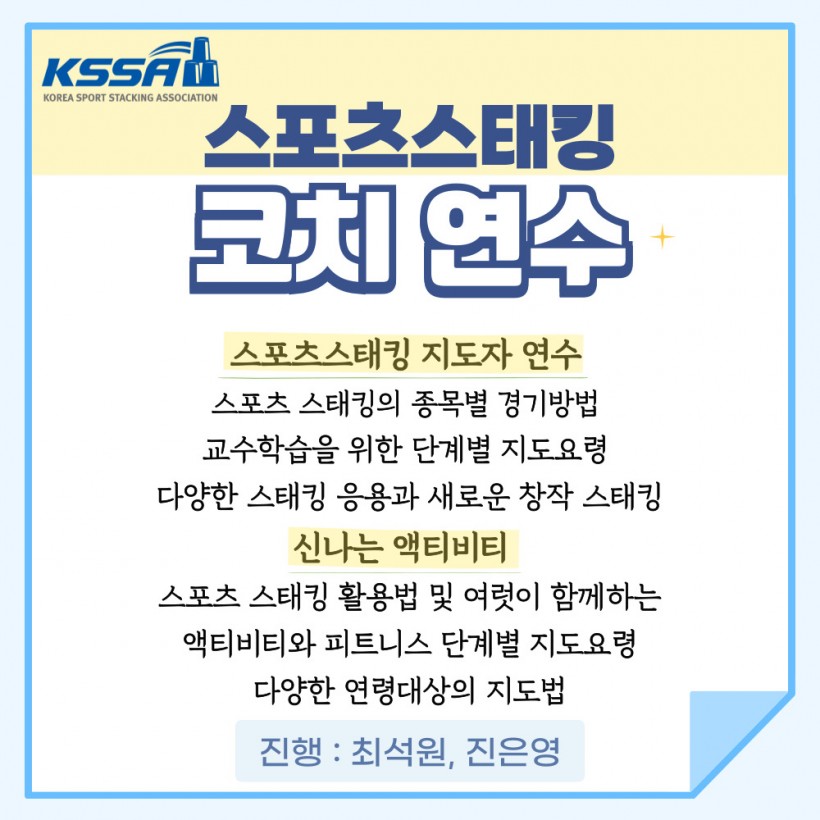 ■ 자격명 : 스포츠스태킹 코치(Sport Stacking Coach) ■ 자격의 종류 : 등록민간자격