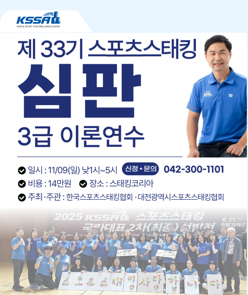 제33기 스포츠스태킹 심판 3급 이론연수 ✅ 일시 : 11월 9일(일) 오후 1시~5시
