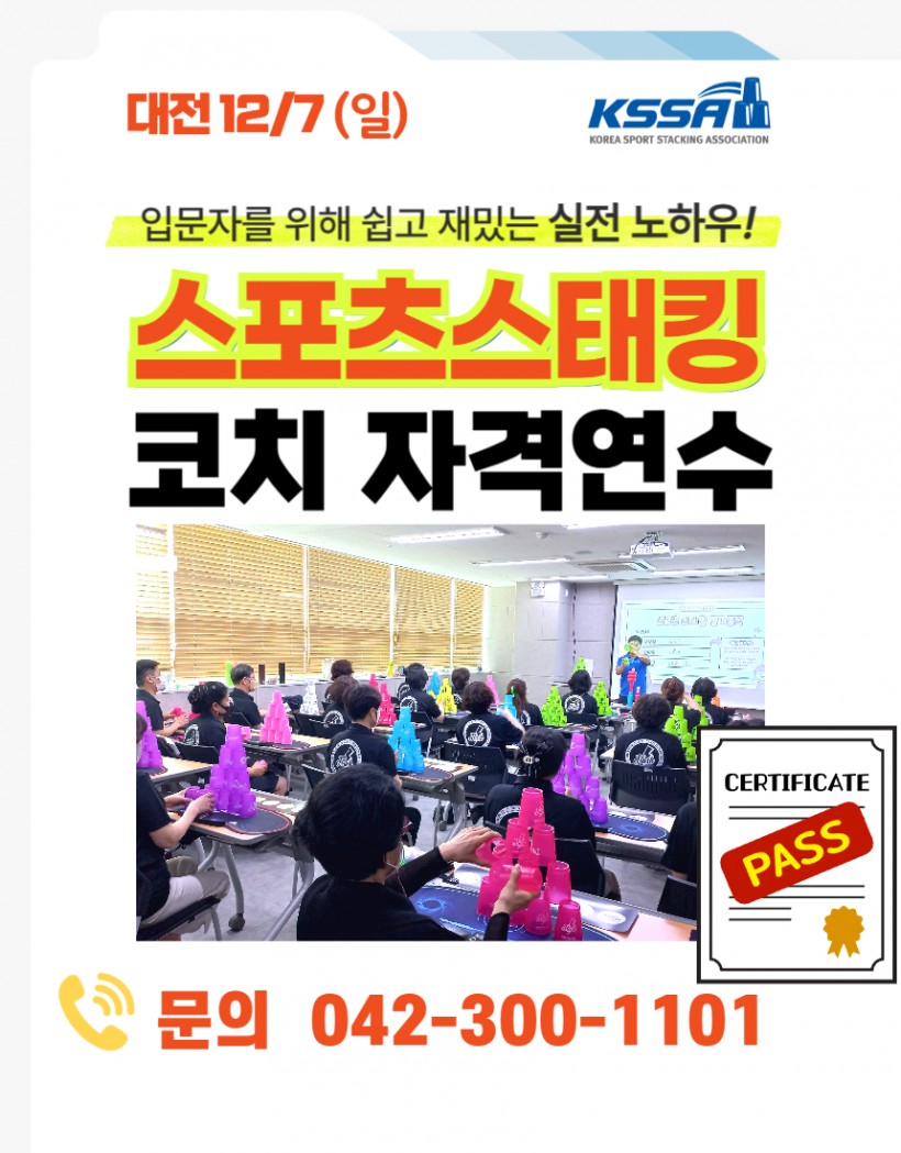 ■ 자격발급기관 : 한국스포츠스태킹협회 ℡. 042-300-1101 | 대전 중구 중앙로109번길 7,4층